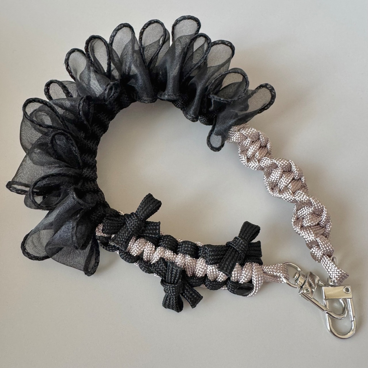 丈夫なパラコードを使用し特別な編み方で仕上げました。