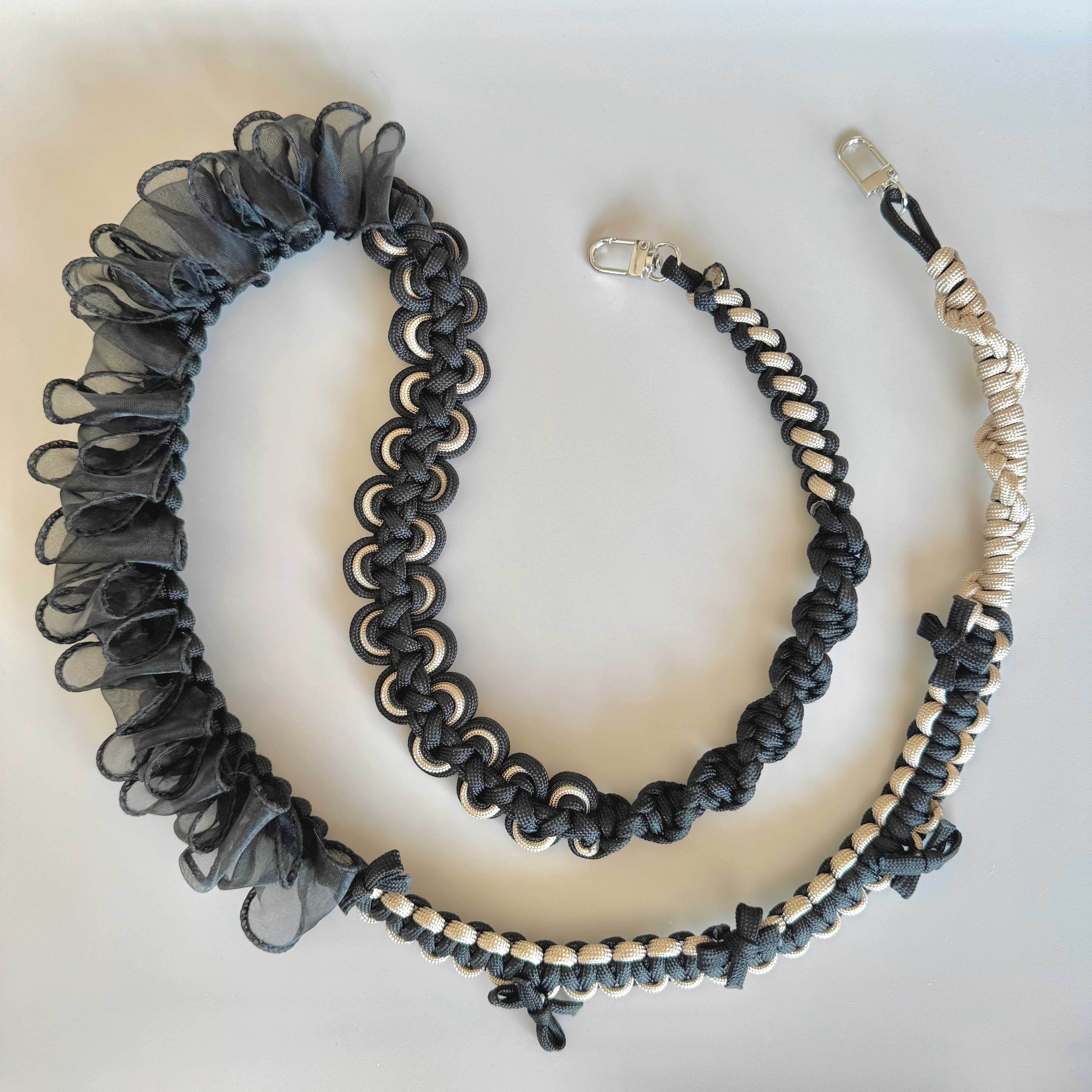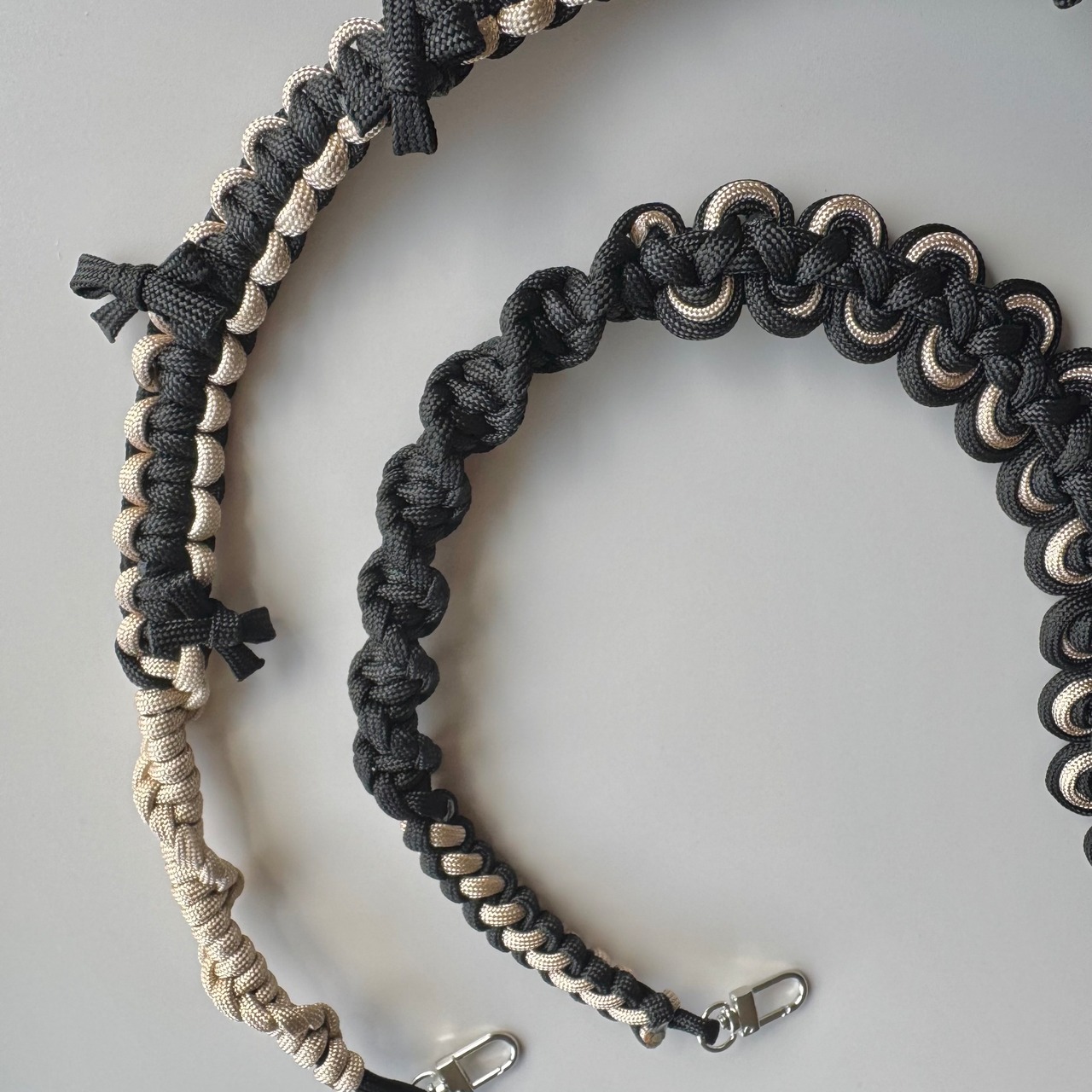 丈夫なパラコードを使用し特別な編み方で仕上げました。