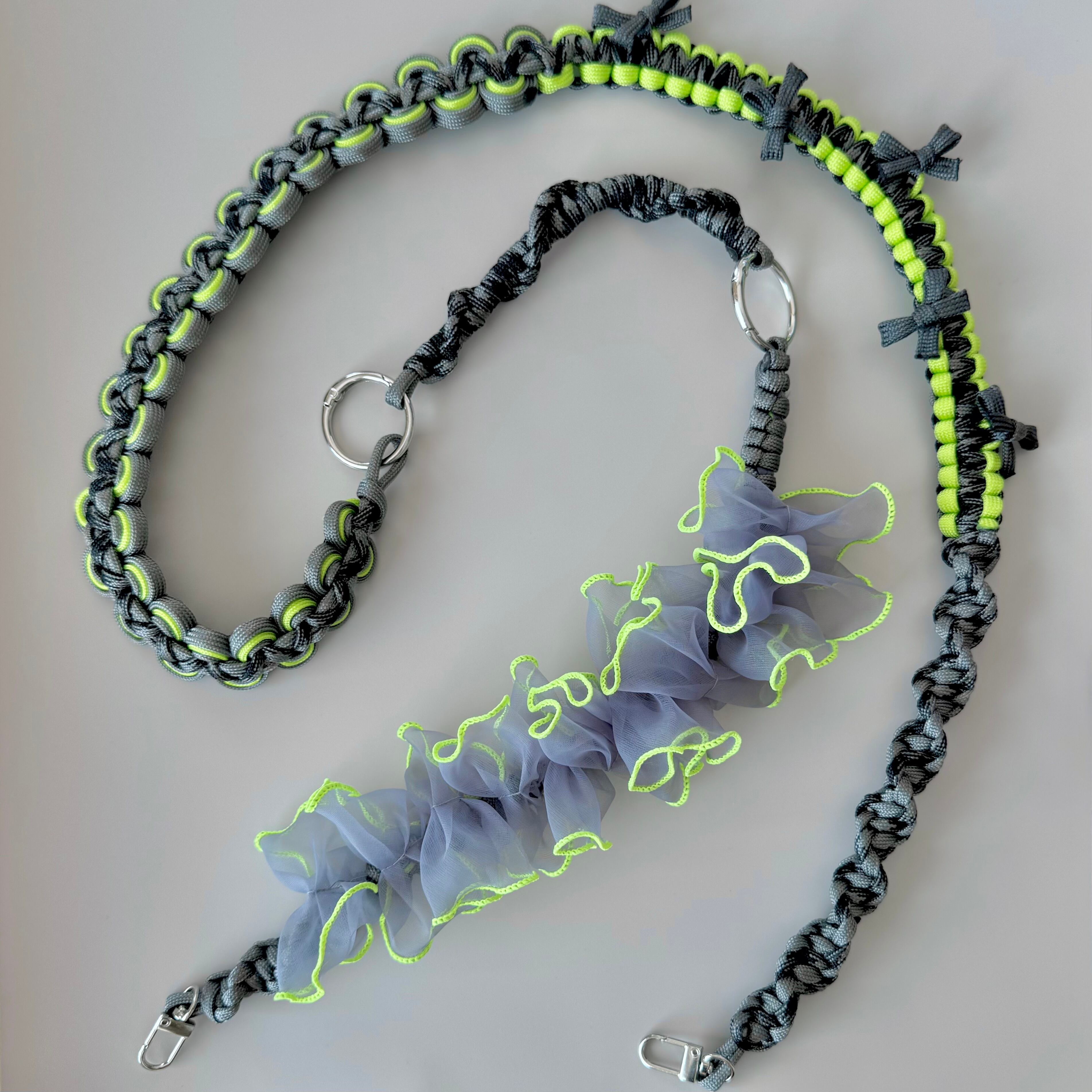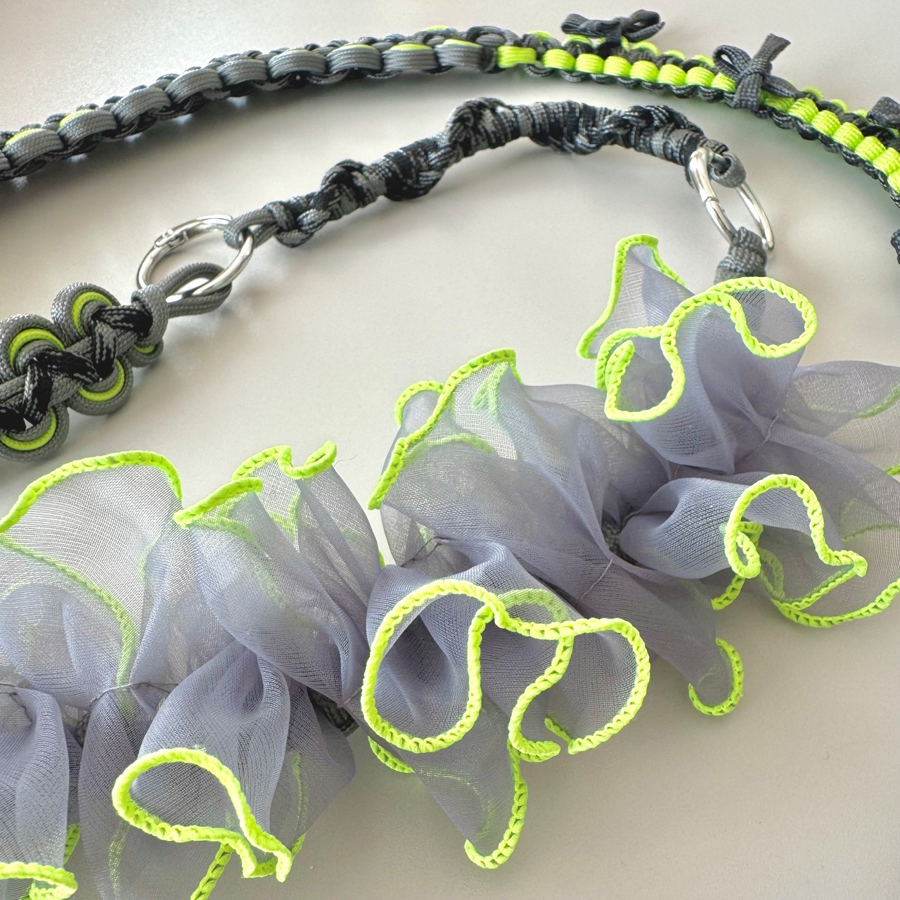 7芯4mmのパラコードの芯にさまざまな技法で編み模様を施しています。