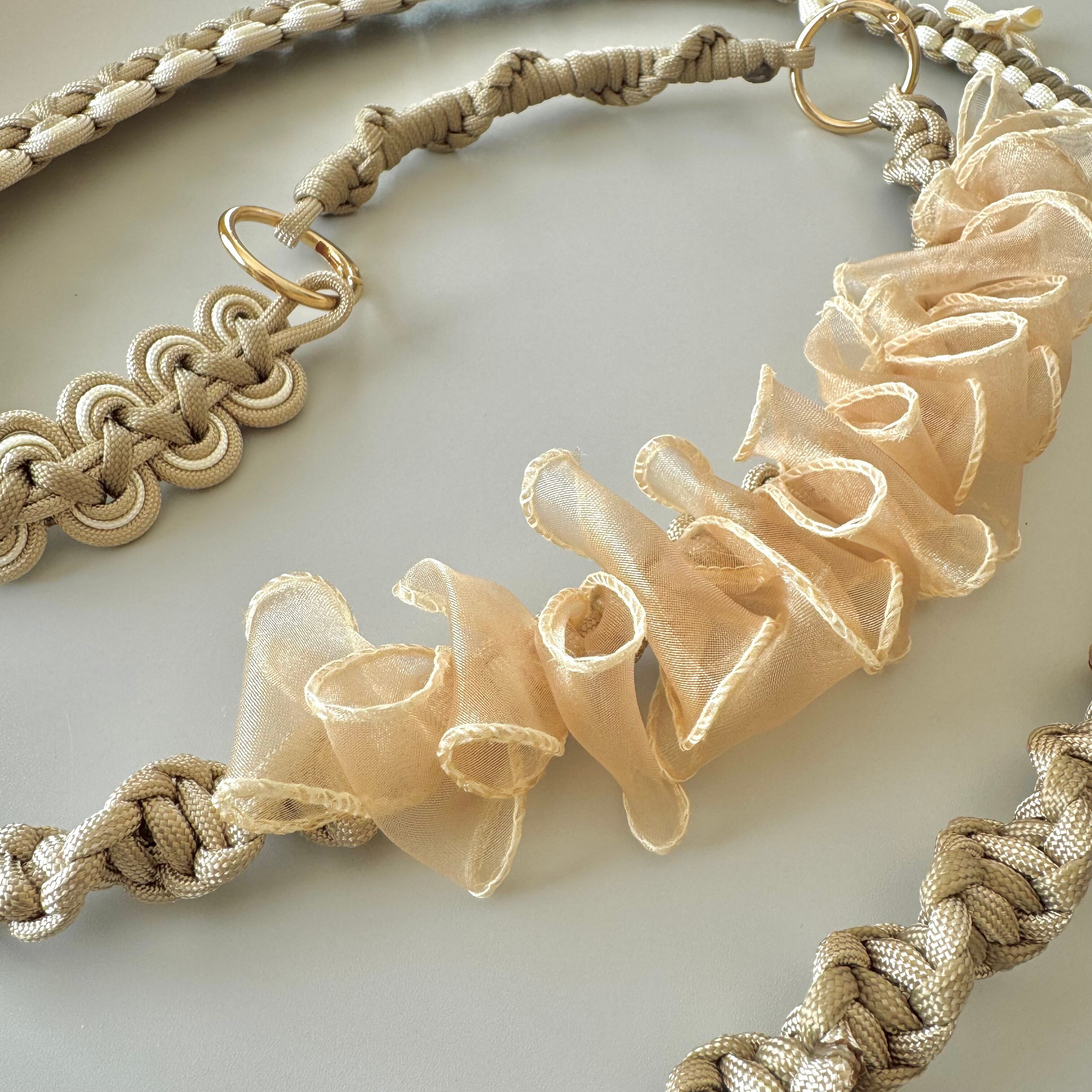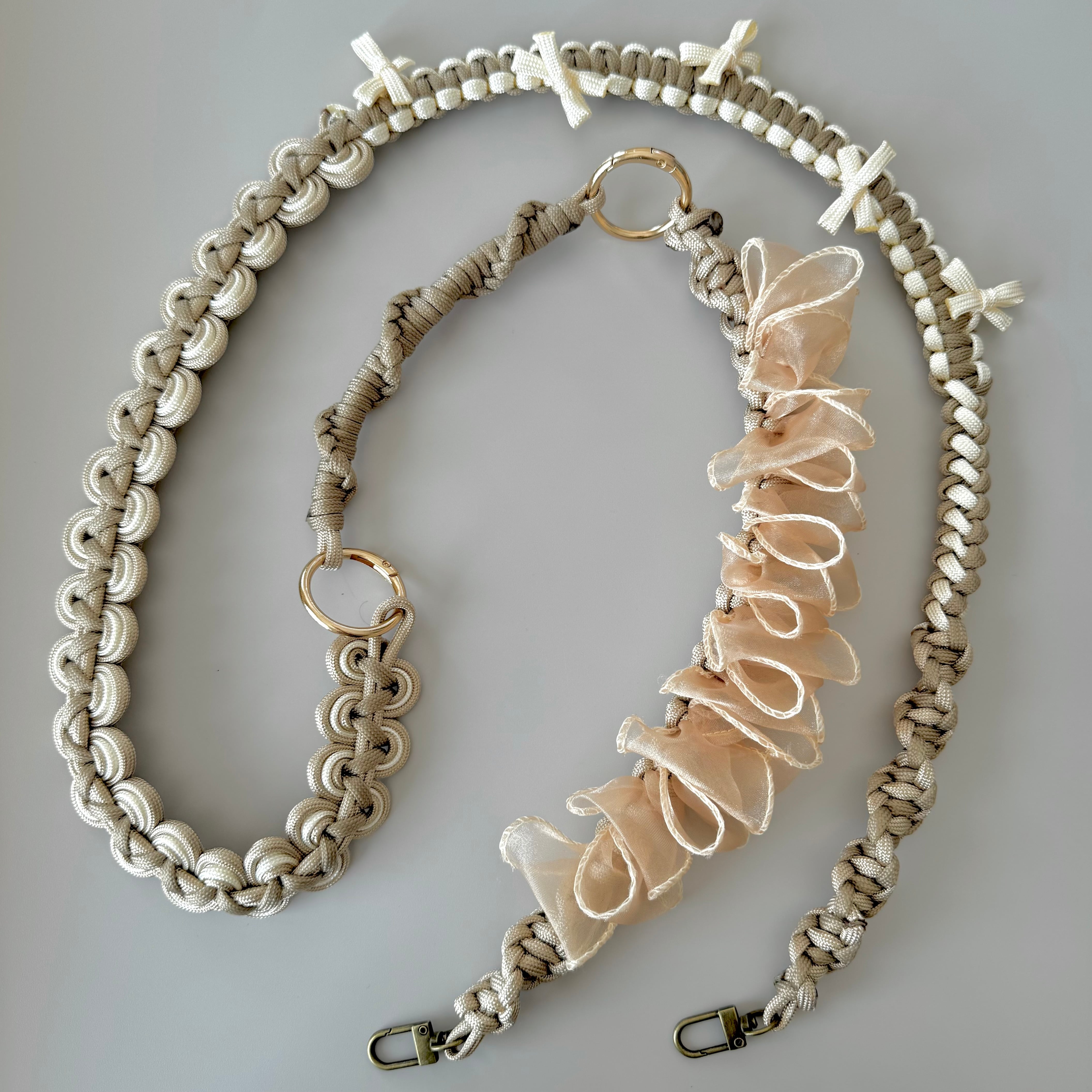 7芯4mmのパラコードの芯にさまざまな技法で編み模様を施しています。