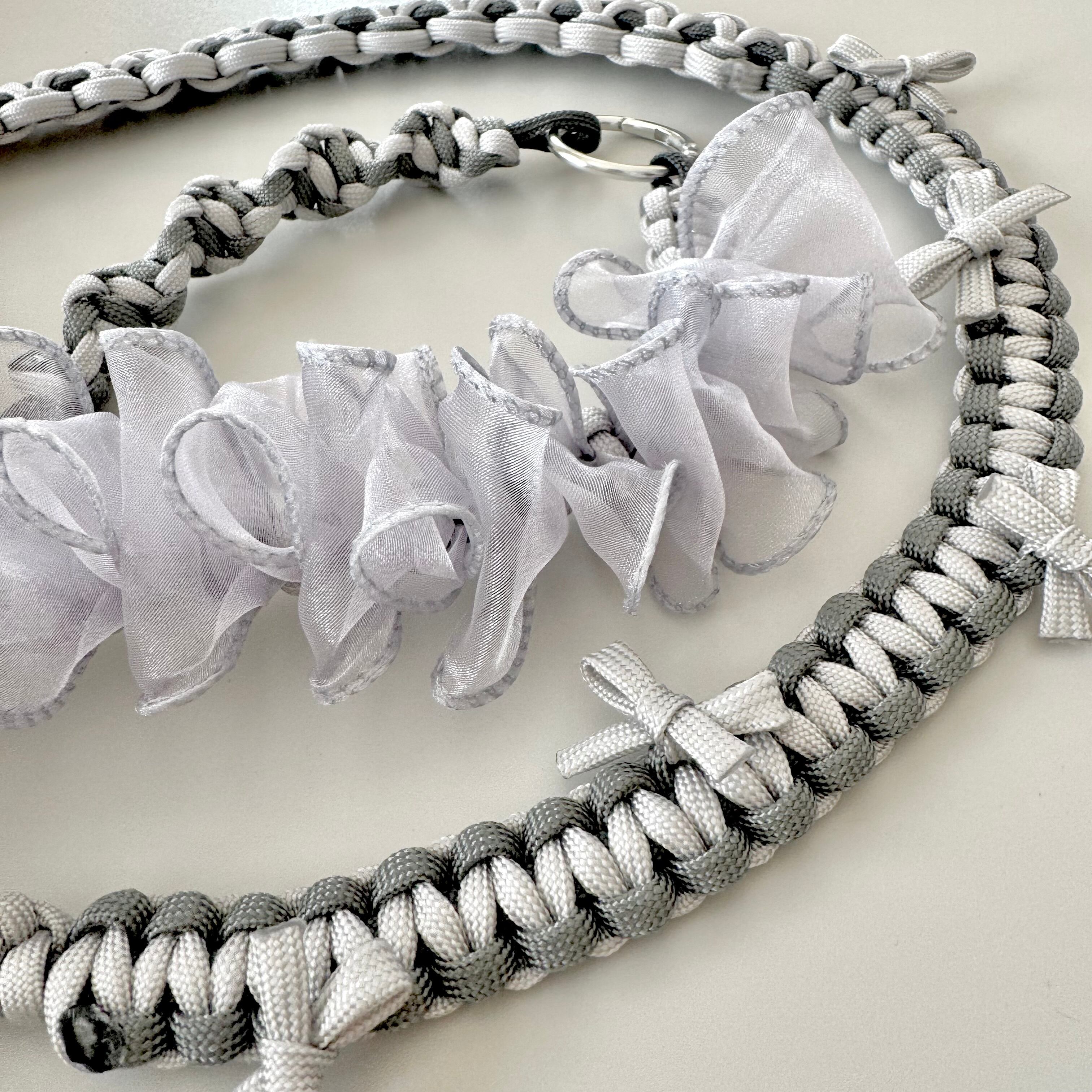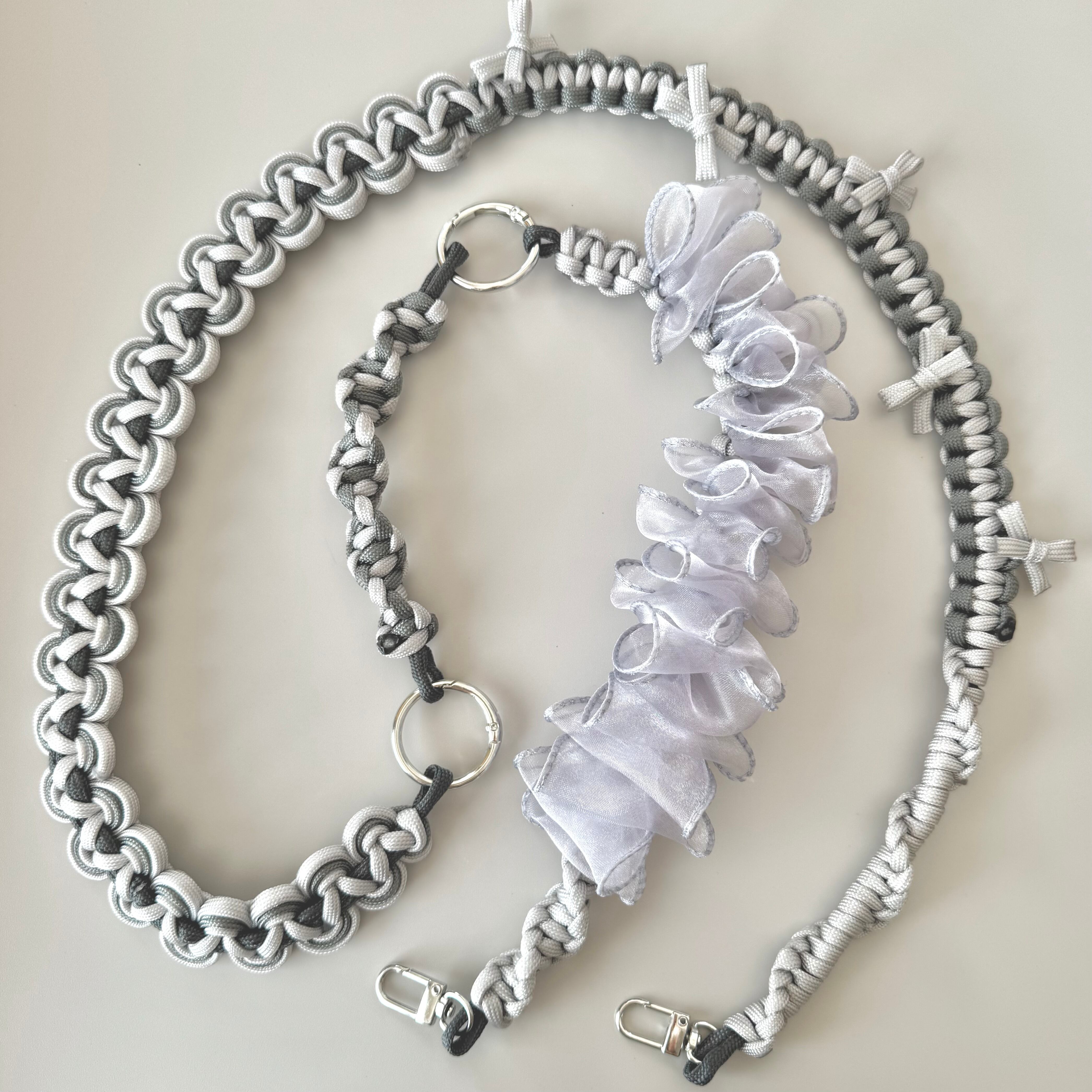 7芯4mmのパラコードの芯にさまざまな技法で編み模様を施しています。